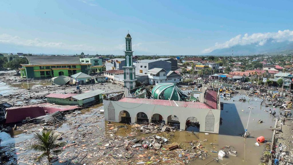 Plus de 1700 morts et 5000 disparus selon un bilan encore provisoire : le séisme de magnitude 7,5 suivi d’un tsunami a ravagé la ville de Palu et toute sa région, dans la province de Sulawesi en Indonésie. Photo : la ville de Palu le lendemain de la catastrophe, @Muhammad Adimaja / Reuters.