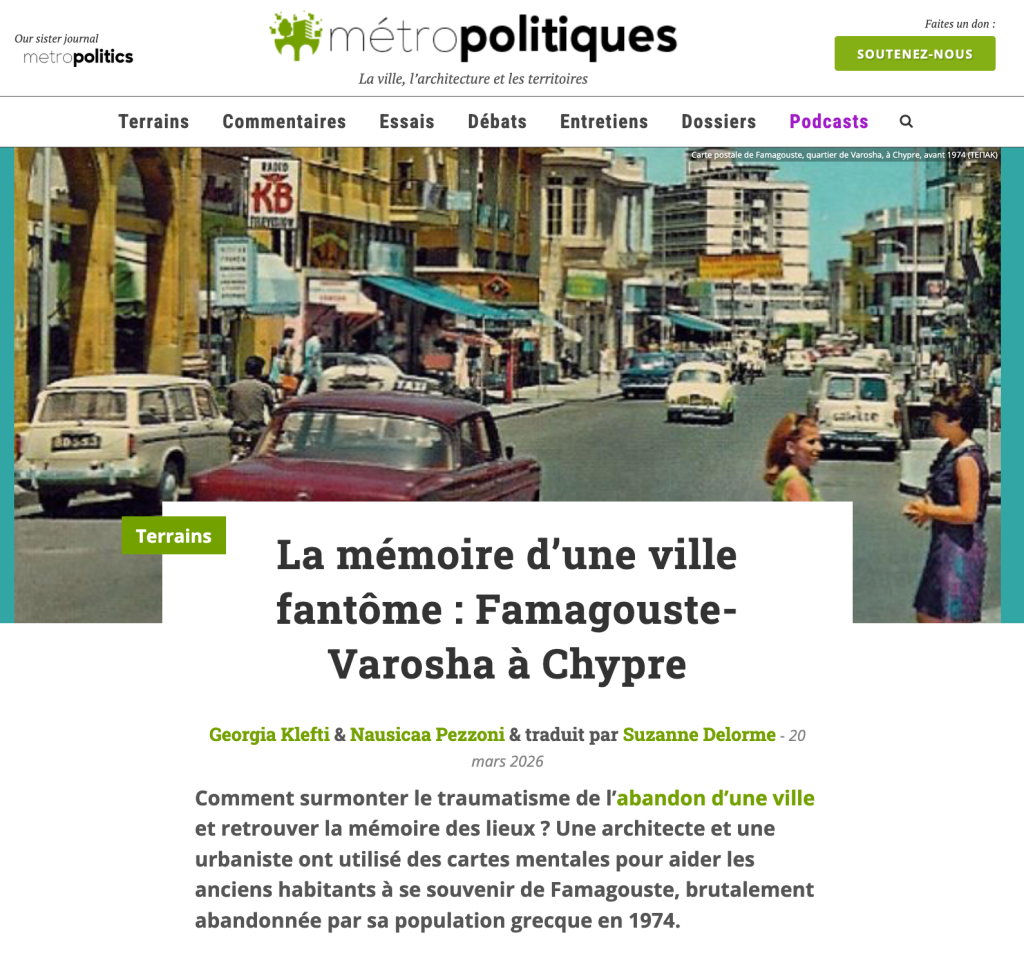 Méditerranée, Territoires de la décroissance par Caroline Lechat20 mars 202613 h 38 min20 mars 2026 « La mémoire d’une ville fantôme – Famagouste-Varosha, à Chypre » – Un article publié dans la revue Métropolitiques en mars 2026 « La mémoire d’une ville fantôme – Famagouste-Varosha, à Chypre » – Un article publié dans la revue Métropolitiques en mars 2026